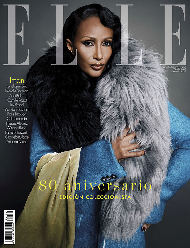 Hay presencias que llenan una habitación antes incluso de hablar. La de Iman (Somalia, 1955) es una de ellas: fuerte, valiente, imponente. Una mujer que ha hecho de su voz una herramienta de cambio y de su vida un manifiesto de autenticidad. «Nunca imaginé que me llamarían icono por simplemente vivir una vida en la que creía», confiesa con serenidad la modelo, que se ha ganado un hueco entre las 10 portadas de ELLE este mes para celebrar el 80 aniversario de la revista, con la que comparte valores como estilo, audacia y compromiso.