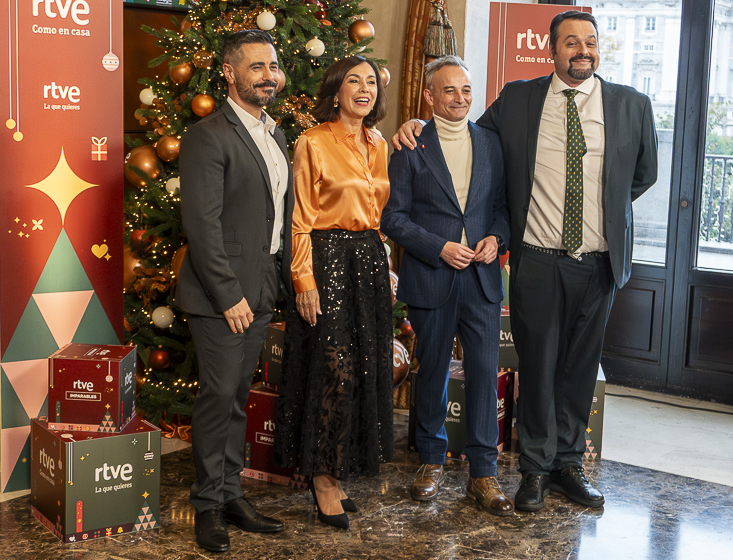Las estrellas navideñas de RTVE se han dado cita este martes en el Teatro Real de Madrid para la puesta de largo de la programación junto a Sergio Calderón, director de TVE, y Alberto Fernández, director de RTVE Play, en una cita presentada por María Eizaguirre, directora de Comunicación y Participación. En la presentación se ha desvelado que el nombre de los presentadores de las Campanadas de RTVE se anunciará este jueves, a las 20:30 horas en La 1.