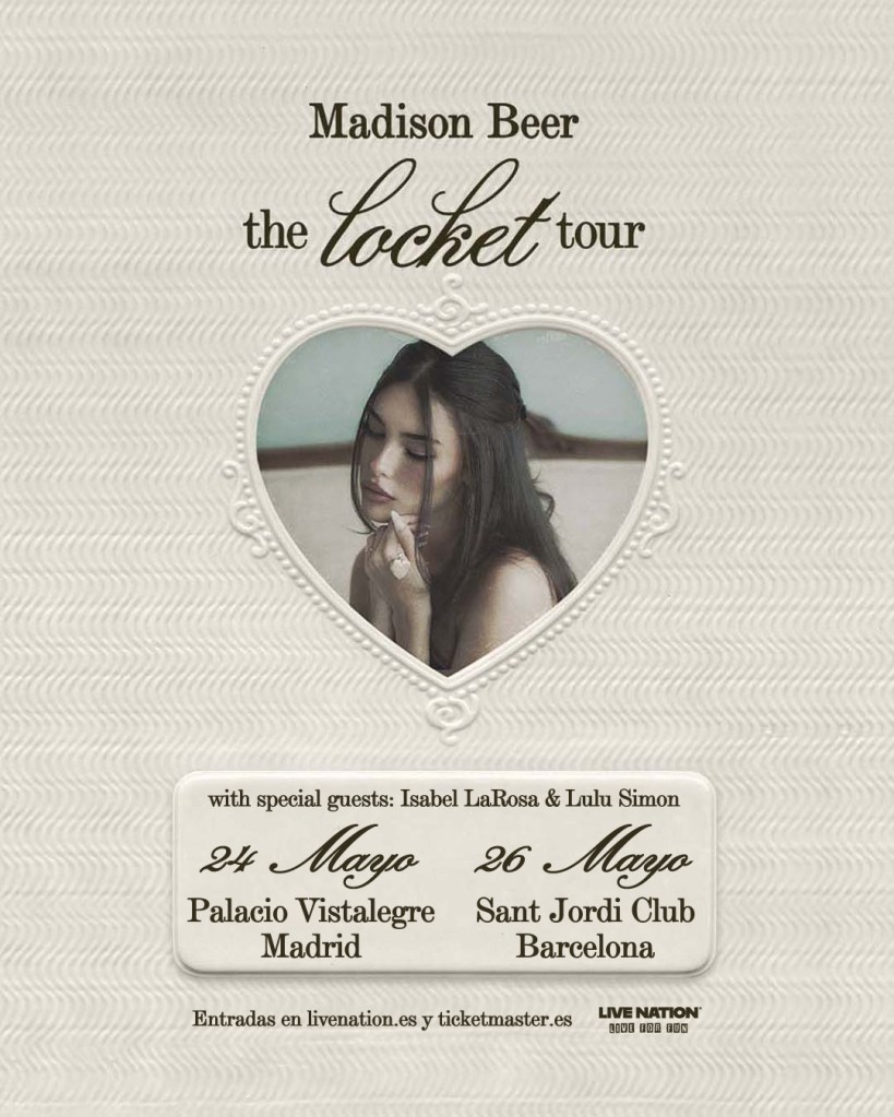La artista dos veces nominada al GRAMMY y con discos de platino, Madison Beer, anuncia the locket tour. Con fechas en Norteamérica, Europa y Reino Unido. Esta será la presentación oficial de su próximo álbum locket en vivo.