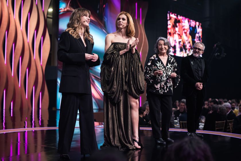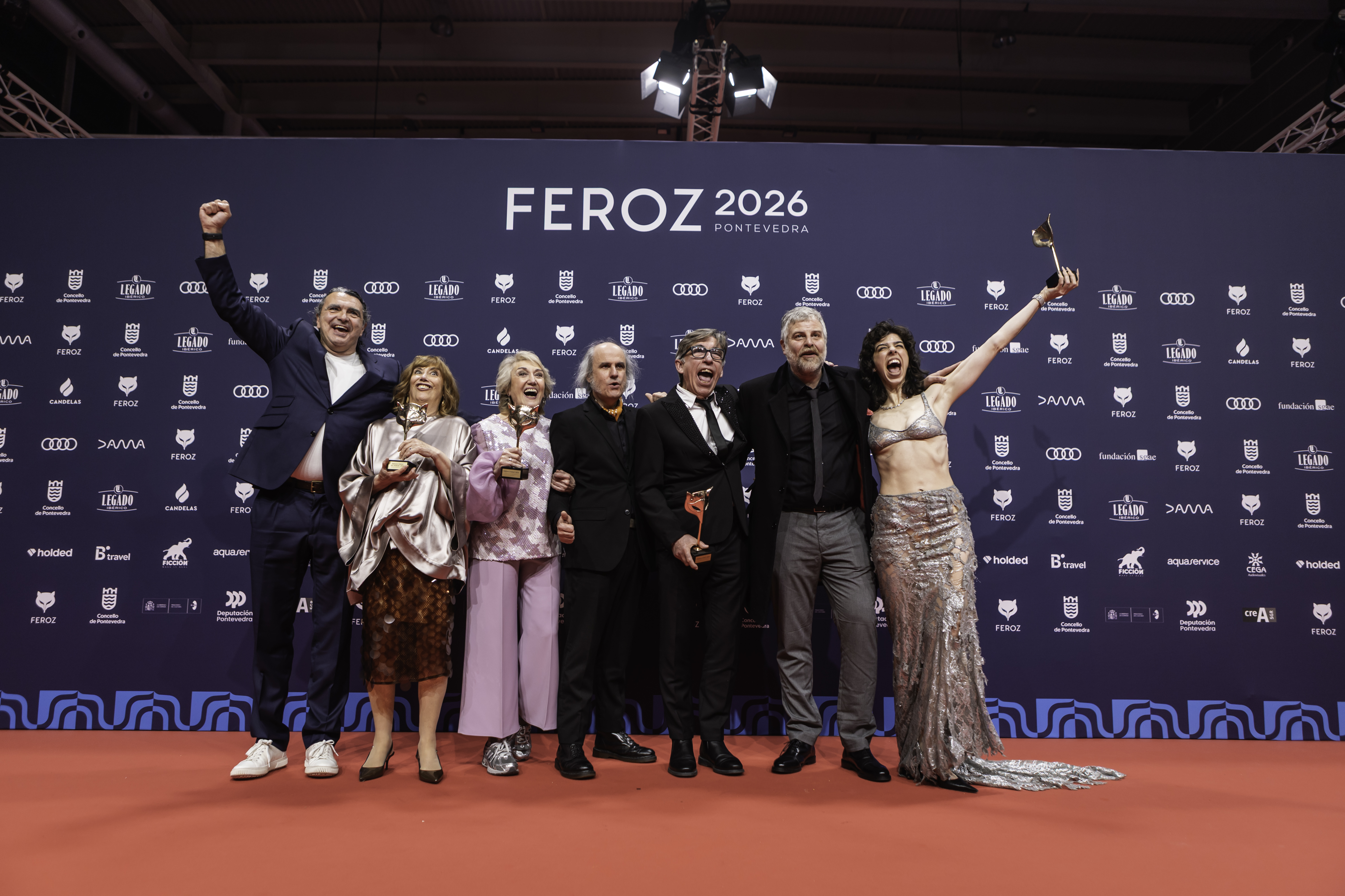 La mejor película de comedia de este año es ‘La cena’; Jose Ramon Soroiz y Kandido Uranga son premiados por primera vez en los Feroz por sus papeles en ‘Maspalomas’ (protagonista y de reparto respectivamente); la Mejor música original es la del artista francés Kangding Ray por ‘Sirât’, que también ha logrado el galardón al mejor tráiler para Aitor Tapia. En la gala no faltó la mención a la doble nominación en los Premios Oscar del filme de Oliver Laxe: mejor película internacional y mejor sonido. Una de las tres responsables de este equipo íntegramente femenino que ha hecho historia en los Oscar, Laia Casanovas, ha estado también presente en la gala.