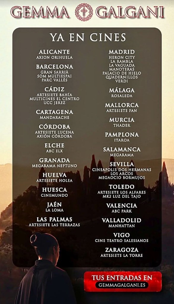 Este pasado viernes 6 de febrero se estrenó en cines la película Gemma Galgani, dirigida por Óscar Parra de Carrizosa y que cuenta en su elenco a los actores y actrices Laura Lebó, Valentín Paredes, Menchu Figueroa, Pablo Pinedo, José Antonio Ortas y José Luis Panero, entre otros.