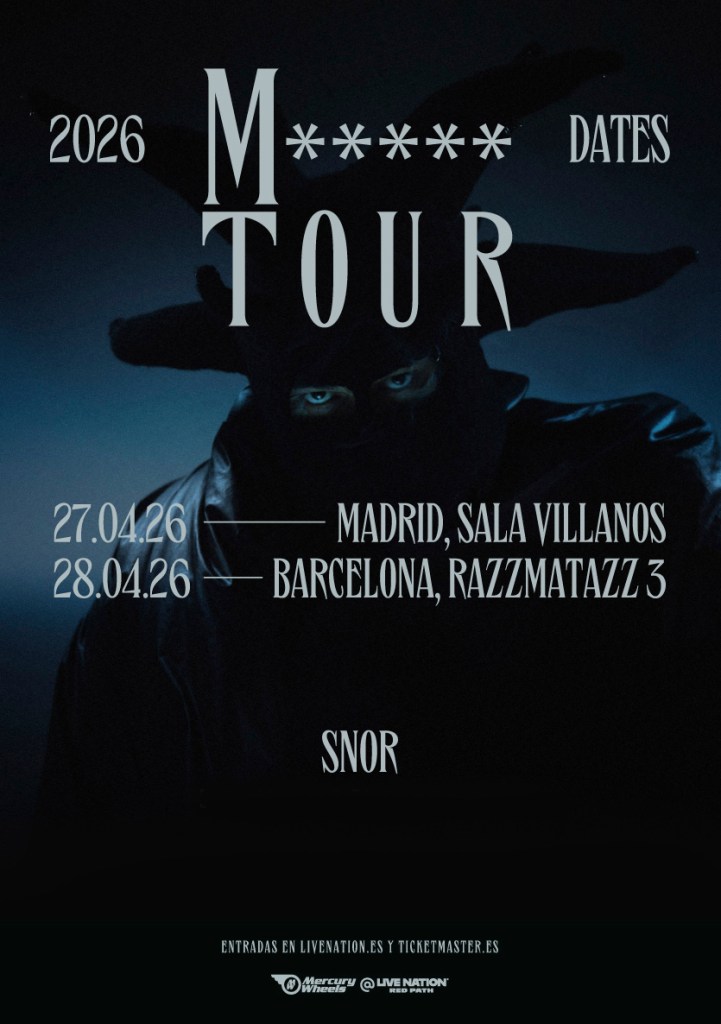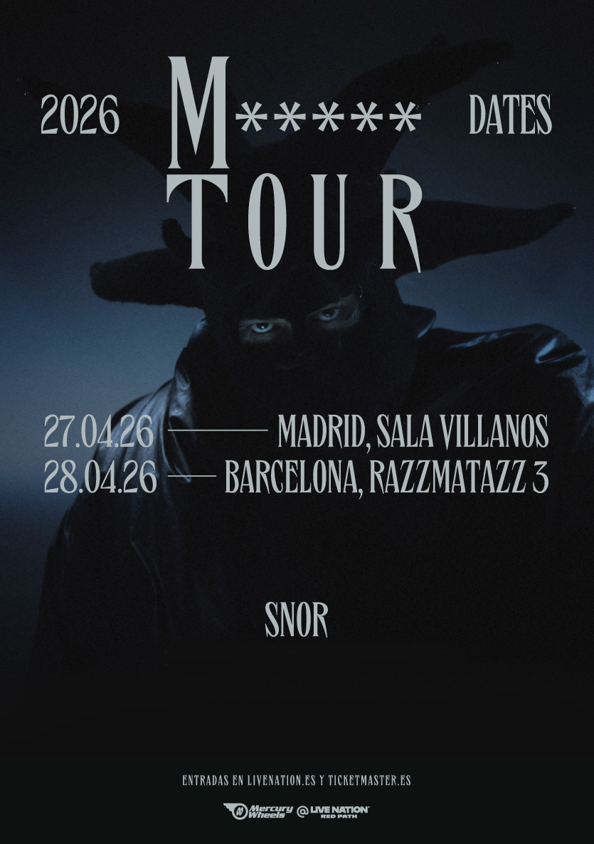 Snor anuncia dos conciertos en España como parte de su próxima gira internacional. El artista actuará el 27 de abril en la Sala Villanos (Madrid) y el 28 de abril en Razzmatazz 3 (Barcelona). Bajo el nombre provisional de ‘M******* Tour’, la gira supondrá la primera parada del rapero en nuestro país y servirá como carta de presentación de su próximo álbum.