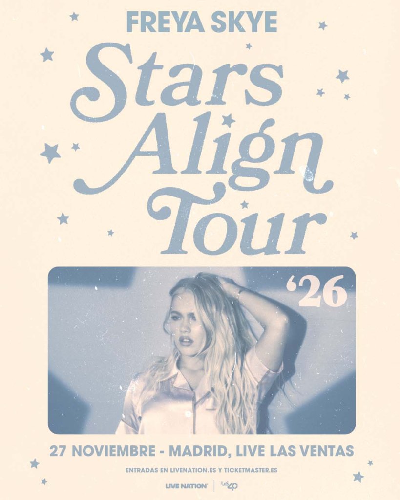 Freya Skye, la nueva promesa del pop, ofrecerá su primer concierto en España el 27 de noviembre de 2026 en la sala Live Las Ventas de  Madrid. Bajo el nombre de ‘Stars Align Tour’, la gira supondrá la primera parada del artista en nuestro país.