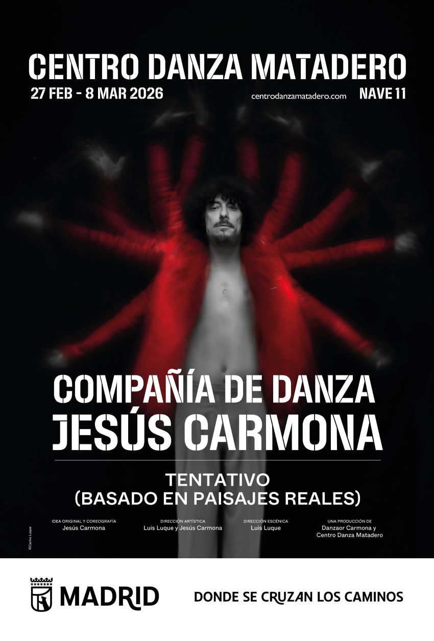 Centro Danza Matadero acoge el estreno absoluto de la nueva creación de Jesús Carmona, figura de la coreografía moderna y bailarín de flamenco, que inicia en Madrid su nueva gira mundial. Tentativo (basado en paisajes reales), con idea original y coreografía del propio Carmona, dirección artística de Carmona y Luis Luque y dirección musical de Manu Masaedo, es una coproducción de Compañía de Danza Jesús Carmona y Centro Danza Matadero. Podrá disfrutarse en seis funciones, del 27 de febrero al 8 de marzo, en este espacio del Área de Cultura, Turismo y Deporte.