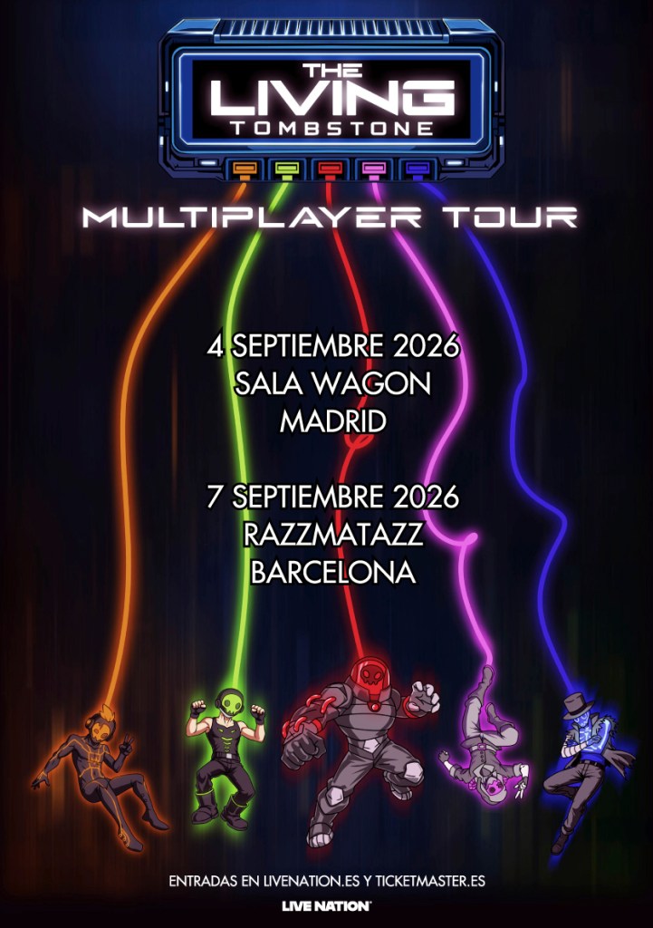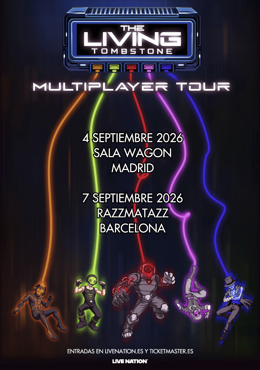 The Living Tombstone anuncia su gira global, The Multiplayer Tour. La banda de videojuegos más grande de internet, traerá su explosivo directo a España: actuará el 4 de septiembre en la Sala Wagon de Madrid y el 7 de septiembre en la Sala Razzmatazz de Barcelona.