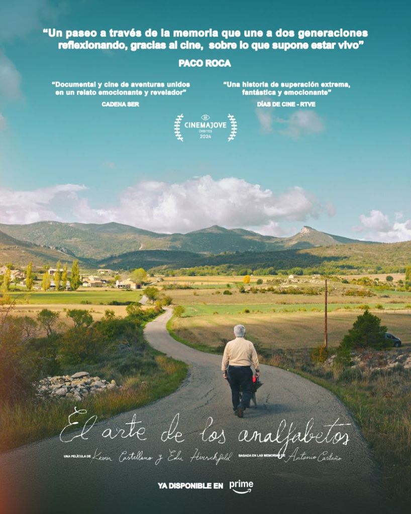 El arte de los analfabetos se incorpora al catálogo de Prime Video tras su recorrido por festivales y proyecciones —entre ellas su paso por Cinema Jove, que acogió su estreno en la sección Órbites—. Producido por Inaudita Films con la participación de À Punt Media, el documental propone una mirada íntima y generacional a la memoria del posfranquismo desde un gesto sencillo: volver a andar el camino de la infancia.