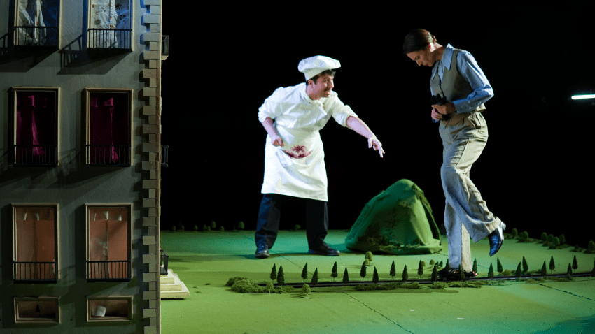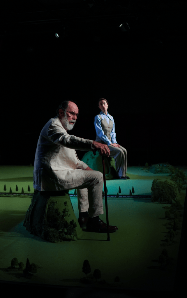 El montaje se construye como un diorama rural atravesado por una atmósfera cargada de tensión, donde los cuerpos, las palabras y los silencios anticipan una tormenta tanto emocional como física. En este espacio contenido, la escena se convierte en un lugar de confrontación entre pasado y presente, entre lo que se oculta y lo que inevitablemente emerge.
