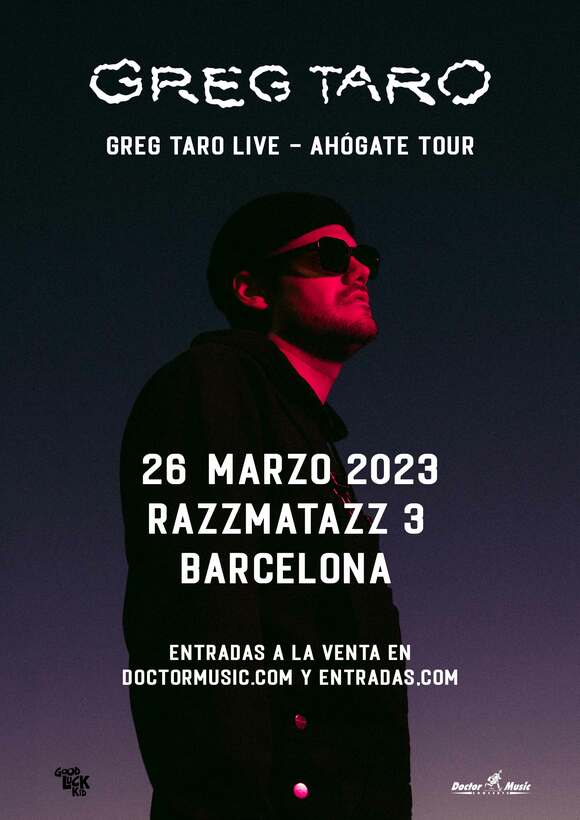 Texto - Redacción-Doctor Music. El artista internacional Greg Taro visitará España con su ‘Ahógate Tour’. Será el domingo 26 de marzo en la sala Razzmatazz 3 de Barcelona. El cantante y compositor, hermano de Álvaro Soler, presentará su segundo EP, Ahógate, en una gira que le llevará a visitar diferentes países europeos. Las entradas para su concierto de Barcelona saldrán a la venta mañana día 20 de enero a las... Leer más →
