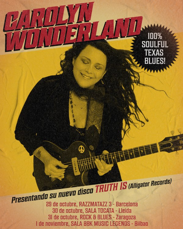 Texto - Redacción. La reconocida artista de blues Carolyn Wonderland, guitarrista principal de John Mayall en sus últimas giras y una de las voces más auténticas del blues contemporáneo, visita España con motivo de la presentación de su nuevo trabajo discográfico: “Truth Is”, editado por Alligator Records y producido por Dave Alvin. https://www.youtube.com/watch?v=FdbpE9DEdn8&list=RDFdbpE9DEdn8&start_radio=1 En esta esperada gira, Wonderland ofrecerá cuatro conciertos en distintas ciudades del... Leer más →
