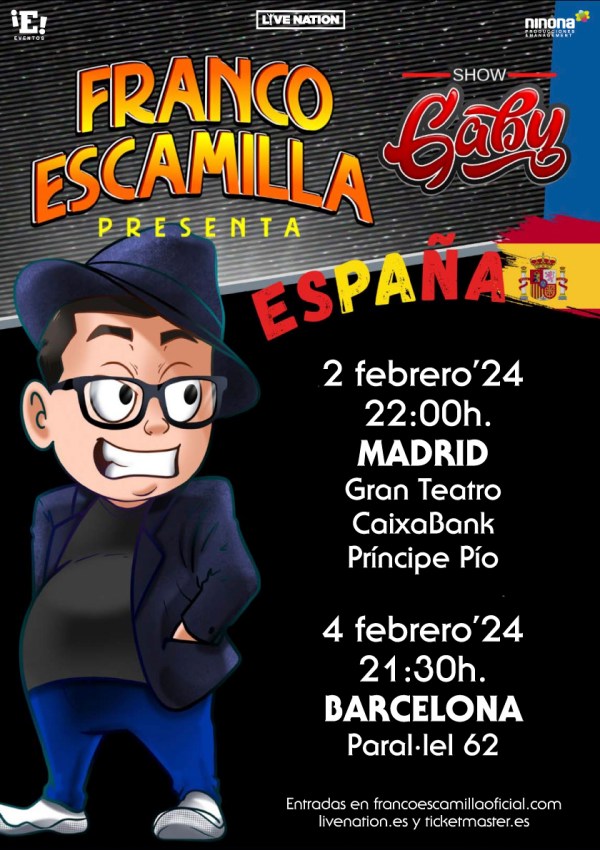 Texto - Redacción- Live Nation. Franco Escamilla, el comediante más reconocido de habla hispana actuará en España en febrero. Será el 2 de febrero en el Gran Teatro CaixaBank Príncipe Pío de Madrid y el 4 de febrero en Paralell 62 de Barcelona. Las entradas para estas dos sesiones salen a la venta el viernes... Leer más →