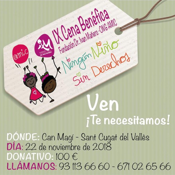 IX Cena Benéfica ‘Ningún niño sin derechos’ de la Fundación Dr. Ivan Mañero y ONG AMIC, el jueves 22 de noviembre