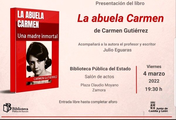 Texto - Redacción. Este viernes, a las 19'30h, en la Biblioteca pñublica estatal de Zamora, la actriz, directora y guionista Carmen Gutiérrez presenta el libro "La abuela Carmen: Una madre inmortal". Como explica la autora " Lo escribí durante la pandemia, y es una biografía de mi madre contada a mi hijo que por dos... Leer más →